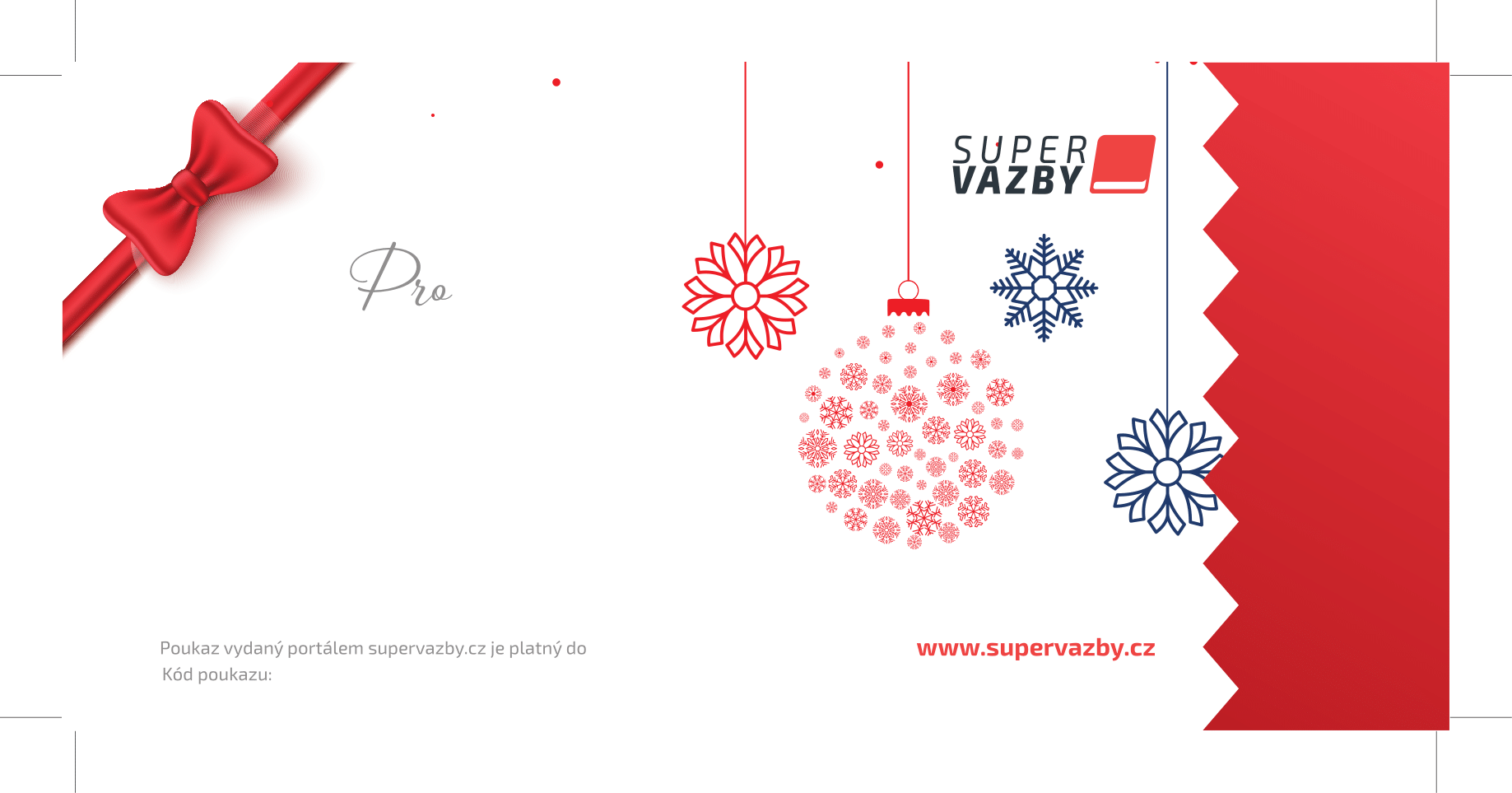 Platnost dárkového poukazu je 13 měsíců od zakoupení. Uplatnit jej lze při objednávce na webu SuperVazby.cz. Poukaz je zaslán ihned po úhradě na Váš e-mail.