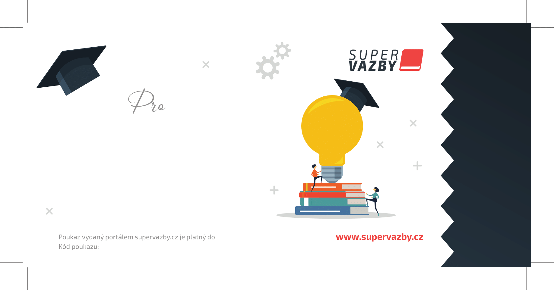 Dárkové poukazy najdete sice všude, ale co si budeme povídat, cílem každého studenta je úspěšná obhajoba diplomky nebo bakalářky. I když žijeme v eko době, stále platí, že práce se odevzdávají v tištěné podobě. Takže my jsme připravili takové netradiční dárkové poukazy pro všechny maminky, tatínky, babičky, dědečky a vůbec všechny, kteří by rádi v rukou drželi krásně svázanou práci svých blízkých třeba i v designovém provedení.